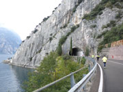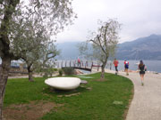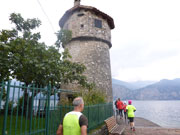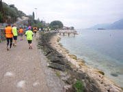 Zufrieden mache ich mich zusammen mit Charly nach einer kurzen Erholungspause auf den Weg zum Hafen von Torbole, wo bereits ein Schiff auf uns wartet, das uns zurück nach Malcesine bringt. Nachdem uns der Hafenmeister mit fachkundigem Blick als Marathonläufer einordnet, bekommen wir, wie natürlich alle Teilnehmer, eine kostenlose Fahrkarte für unsere Rückreise. Die Schiffsfahrt dauerte rund eine dreiviertel Stunde, da wir zuvor auch noch in Limone am Westufer des Gardasees anlegen. So kommen wir als Zugabe noch in den Genuss einer kostenfreien Schiffsrundfahrt, die man sowieso machen muss, will man behaupten, am Gardasee gewesen zu sein. |