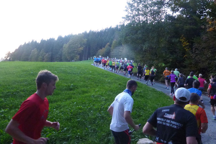 Mit den Streckenänderungen gibt es heuer neue Cut-Off-Zeiten zu beachten und wir dürfen auch mehr klettern, insgesamt 2340 Höhenmeter geht es aufwärts. Zudem gibt es auch eine neue Startzeit, bereits um 8:30 Uhr geht es los. Auch wenn heuer mehr auf Trails gesetzt wird, als Pflichtausrüstung sind nur Trailschuhe mit gutem Profil vorgeschrieben. Die Regelung gab es bereits im Vorjahr. Man hat sogar die Sohlen kontrolliert, aber festgestellt, dass die allermeisten bestens ausgerüstet sind und der Aufwand sich nicht lohnt. Wer allerdings von Streckenposten mit Straßenschlappen ohne Profil erwischt wird, ist aus dem Rennen.