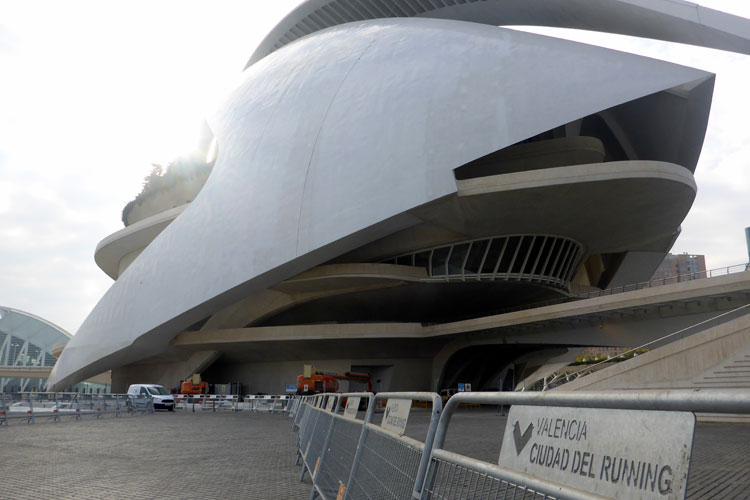 Das Palau de les Arts Reina Sofìa, eine extravagante Oper und Musikplast mit vier Sälen auf 37.000 m² passieren wir schon kurz zuvor auf dem Weg zur Messe. Die Pont de l`Assut de l`Or, eine Schrägseilbrücke, deren 125 Meter hoher Pylon den höchsten Punkt der Stadt bildet, rundet das Bild dieser futuristisch anmutenden Anlage ab. Im ersten Stock des Wissenschaftsmuseums können wir unsere Startnummern in Empfang nehmen. Hier herrscht noch Ruhe und alles ist herrlich relaxed. Dass Fossy die falsche Bestätigung zur Abholung ausgedruckt hat, spielt keine große Rolle. Zwei nette Damen an der Information scannen das mitgebrachte Blatt ein und schon hat auch Fossy seine Startnummer. Wir schlendern anschließend noch etwas durch die Messe, die sich kaum von anderen Marathonmessen unterscheidet. Abschließend bekommen wir noch eine prall gefüllte Tüte mit diversen Gimmicks und dem passenden Laufshirt.