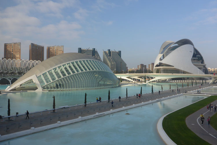 Am Samstag wollen wir es etwas ruhiger angehen lassen und entscheiden uns für einen Besuch des L`Oceanogràfic, dem mit 110.000 m² größten Aquarium Europas. Der Bau wurde von Fèlix Candela in Form einer Wasserlilie geplant und befindet sich direkt hinter der Pont de l`Assut de l`Or. Das Aquarium wird durch eine vier Kilometer lange Pipeline mit frischem Wasser aus dem Mittelmeer versorgt. 42 Millionen Liter Wasser bieten Platz für 45.000 Meerestiere. Haie, Pinguine und Seelöwen gehören zu den rund 500 Arten, die es zu bewundern gilt. Eine besondere Attraktion sind die weißen Beluga-Wale, die im arktischen Gewässer leben und ich noch nie zuvor gesehen habe. Auch wenn wir uns heute eigentlich etwas schonen wollten, entschließen wir uns doch noch für einen Besuch des Hafens und sind dann doch etwas mehr als geplant gelaufen. Aber was soll`s: Valencia ist zu schön, um sich hier etwas entgehen zu lassen.