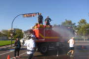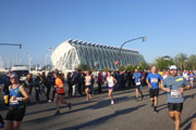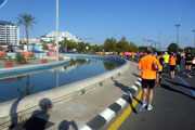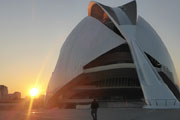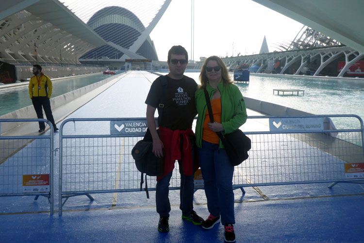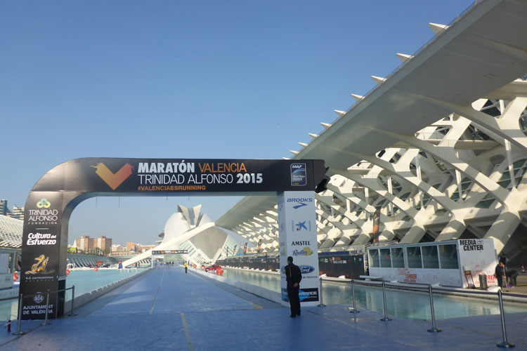 Am frühen Sonntagmorgen ist es dann so weit. Nach einem kurzen Frühstück mache ich mich zusammen mit Fossy auf den Weg zum Ciutat de les Arts y les Ciències. Die Stadt scheint noch zu schlafen. Je näher wir aber dem Start- und Zielgelände kommen, umso mehr Läufer drängen auf die Straßen. Es ist angenehm frisch, was sich aber im Verlauf des Marathons noch ändern sollte. Wie für uns arrangiert, erleben wir einen Sonnenaufgang, der alles in ein orangefarbenes Licht taucht. Schöner kann ein Tag nicht beginnen. |