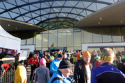 Als ich soweit wieder erholt war, stellte ich fest, dass ich etwas Entscheidendes vergessen habe. Ich habe keine Finisher-Medaille um den Hals hängen. Wie konnte mir das passieren. Also machte ich mich auf die Suche und wurde enttäuscht. Die Medaillen waren aus. Es gab keine mehr. Offensichtlich hatten dank des tollen Wetters gerade auf den kürzeren Strecken so viele Läufer nachgemeldet, dass die vorbestellten Medaillen einfach nicht ausreichten. Etwas geknickt machte ich mich auf in die Therme, genoss dennoch die warme Dusche und machte mich dann auf die Suche nach meinen Lauffreunden. Als erstes lief ich Gerhard wieder in die Arme. Er hatte nach drei Runden aufgehört, da er das Zeitlimit von fünf Stunden nicht hätte erfüllen können. Er war trotzdem mit sich zufrieden und gratulierte mir zu meiner Zeit. Im Außenbereich sah ich dann Bernie, der sich am Beckenrand ausruhte. Bernie war auch sehr mit sich zufrieden. Eine 4:08 war er gelaufen. Tolle Zeit. Das Training der letzten Wochen hatte sich für ihn ausbezahlt. Charly war noch beim Massieren, das übrigens auch kostenlos angeboten wird. Er war zwei Minuten nach Bernie im Ziel. Tolle Ergebnisse wie ich finde. Wir konnten alle zufrieden sein.