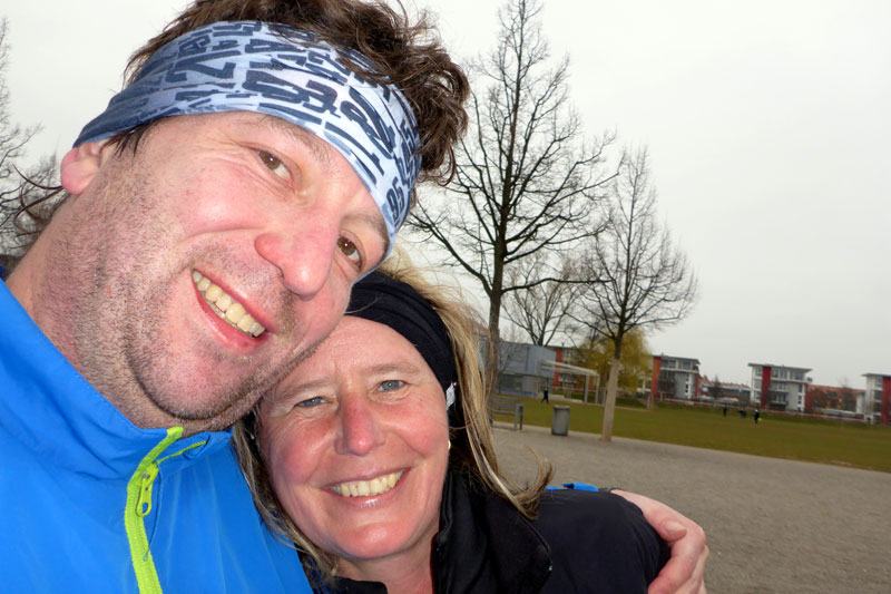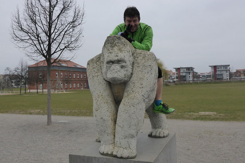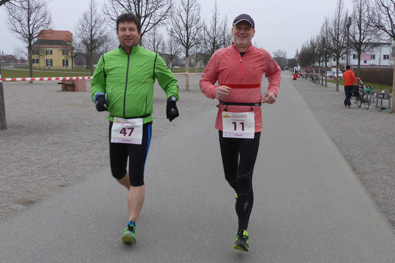 Mit Ablauf der vierten Stunde habe ich ein neues Motivationsziel gefunden. Das Absolvieren der Marathondistanz. Ich kontrolliere also ab und zu die gelaufenen Kilometer und schenke der verbleibenden Zeit keinerlei Beachtung mehr. Michaels Frau und dessen Eltern stehen nach einer längeren Abwesenheit nun auch wieder an der Strecke. Auch sie applaudieren mir und haben immer wieder aufmunternde Worte für mich. Es läuft wieder gut und ich verschwende keinen Gedanken mehr daran, dass das heute nichts werden könnte. Nach viereinhalb Stunden opferte ich drei Minuten und kramte die Wechselklamotten aus meiner Sporttasche. Mir war inzwischen etwas kalt geworden und trockene Kleidung tat einfach gut. Kurz darauf traf ich wieder mal auf Charly, auch er trug inzwischen neue Oberbekleidung. Dann ist auch bald der Marathon in der Tasche. Alles prima.
