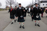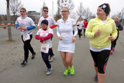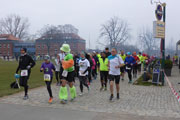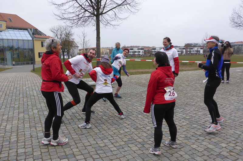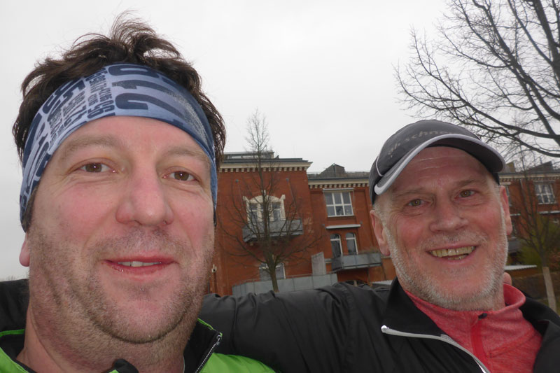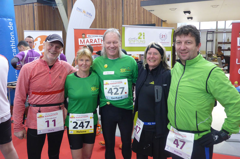 Auch die Spitzkehre vor dem Eingang zur Grünen Halle kenne ich inzwischen gut und laufe immer einen weiten Bogen. Das sind zwar immer zwei oder drei Meter mehr, aber meinen Knien tut das gut. Und so laufe ich weiter und weiter, Runde um Runde. DJ Firewall ist inzwischen bei AC/DC, Bon Jovi und Billy Idol angelangt. Das macht Laune, auch wenn die Akustik etwas zu wünschen übrig lässt. Nach zwei Stunden hat mich Michael schon das eine oder andere Mal überrundet, auch Charly habe ich schon zweimal ziehen lassen. Nun bekomme ich doch wieder kalte Finger. Von der versprochenen Sonne und den vorausgesagten 10 Grad gibt es keine Spur. Es dürfte immer noch drei Grad haben, der eisige Wind lässt es mir aber wesentlich kälter vorkommen und so greife ich in meine Sporttasche und zieh mir wieder die Handschuhe über.