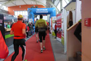 Nach drei Stunden ziehe ich eine erste Bilanz. Ich bin bei knapp über 25 Kilometern, muss also das Tempo weiterlaufen, will ich die 50 Kilometer heute knacken. Zudem weicht meine Laufuhr inzwischen um über 700 Meter von der Anzeige in der Halle ab. Möglicherweise führt das Durchlaufen der Halle zu Irritationen bei meiner Uhr. Da die Strecke ja amtlich vermessen ist, gibt es an der Anzeige auf der Leinwand keine Zweifel. Die Strecke ist inzwischen auch nicht mehr so stark frequentiert, da inzwischen ja alle Halbmarathonis das Ziel erreicht haben dürften. Ich versuche nun einfach meinen Trott weiterzulaufen und versuche abzuschalten. Nicht darüber nachdenken, wie lange es noch zu laufen ist. Das bringt mich weiter. Jede dritte Runde gönne ich mir eine kleine Gehpause und genieße währenddessen meinen warmen Tee und ein Hanuta. Ein paar Salzstangerl greife ich mir auch ab und zu und so vergeht die vierte Stunde relativ unspektakulär.
