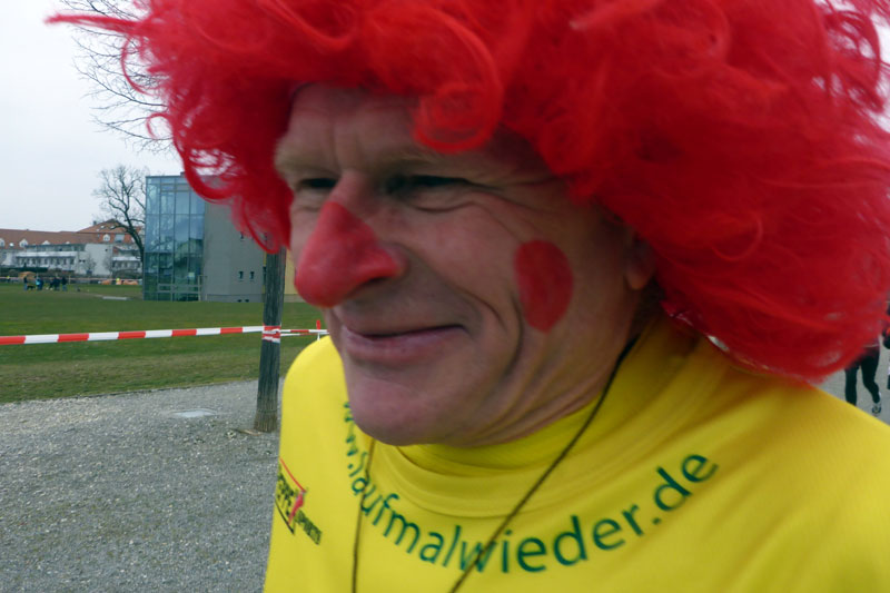 Wie schon in Ottobrunn kommt bei mir und auch bei Charly nach etwas über zweieinhalb Stunden ein tiefes Motivationsloch. Wir sind ja doch schon ein Stück gelaufen und die Beine machen sich bemerkbar. Vor allem das Abbremsen und Wiederanlaufen vor den Ecken strengt doch mehr an als gedacht. Es sind noch dreieinhalb Stunden zu laufen, das Ziel ist noch in weiter Ferne. Ich drehe ein paar Runden mit Charly, wobei wir ab und an gehen, um uns wieder etwas zu erholen. Das klappt ganz gut und schließlich zieht jeder wieder seine eigenen Runden, da wir ja dann doch nicht dasselbe Tempo haben.