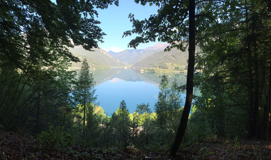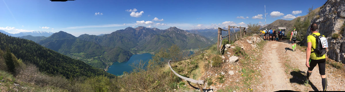 Der folgende Anstieg ließ erahnen, dass das hier und heute kein Spaziergang werden würde, allerdings fühlte ich mich mittlerweile richtig gut. Die Anfangsnervosität hatte sich gelegt und ich war endlich drin in meinem Rennen. Außerdem entschädigte die Aussicht auf den Ledrosee für die bis dato geleisteten Strapazen. Nun ja, ich redete mir das zumindest ein. Das Gelände wurde nun immer unwegsamer und der Wettbewerb machte seinem Begriff als Trail Run alle Ehre. Bei Cima Pan erreichte ich mit 1991 Metern den höchsten Punkt der Strecke. Nicht nur die Höhenmeter machten mir hier zu schaffen, sondern auch die durch die warmen Temperaturen einsetzende Schneeschmelze machte die Strecke äußerst unwegsam und größte Vorsicht war geboten. Lobenswert hervorzuheben ist an dieser Stelle der Einsatz der italienischen Bergwacht. Diese hatte mehrmals besonders gefährliche Stellen mit Seilen gesichert, was vor allem gegen Ende hin, als die Beine schon sehr schwer waren, eine unsagbare Erleichterung darstellten.