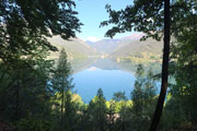 Nach ein paar Kilometern ging es dann zum ersten Mal bergauf Richtung Ledrosee. Kurz vor dem finalen Anstieg kam dann nach elf Kilometern die erste von sechs Verpflegungsstationen und ja was soll ich sagen, aller Vernunft zum Trotz hab ich erstmal richtig gut „gefrühstückt“. Hier ne Hand voll Nüsse, da a bissl Salami, Kuchen – gönn dir, und mal wieder Bananen und Orangen. Mit einem doch recht mulmigen Gefühl machte ich mich weiter auf den Weg, doch dieses blieb unbegründet – meine Fressattacke sollte ohne Folgen bleiben.