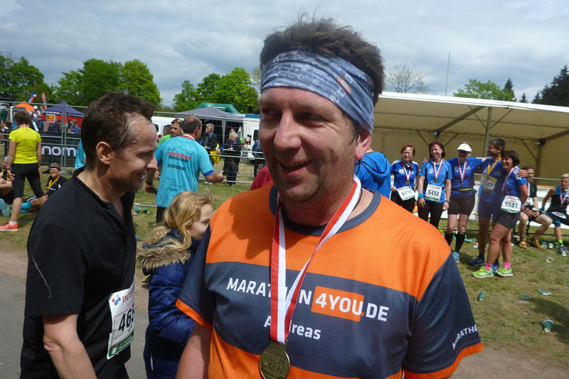 Die Zeit hätte für mich etwas schneller sein können, aber meine Oberschenkel haben aufgrund der vergangenen Wochen doch etwas gemotzt, ich hab dafür mehr Fotos im Kasten und bin damit rundum zufrieden. Ich beobachte noch etwas die Zieleinläufe und warte auf Greppi. Bunt gemischt trudeln Supermarathonis und Marathonis in Schmiedefeld ein. Marcus ist die Strecke im Hochzeitsanzug gelaufen und wird jetzt von seiner Mandy empfangen, wie ich verstehe, soll da jetzt ernsthaft eine Hochzeit folgen. Mensch Mandy, wieso biste denn nicht selbst mitgelaufen. Neun Stunden hat man für den Marathon Zeit, da hättet ihr für euren gemeinsamen Weg durchs Leben schon mal richtig Ausdauer trainieren können.