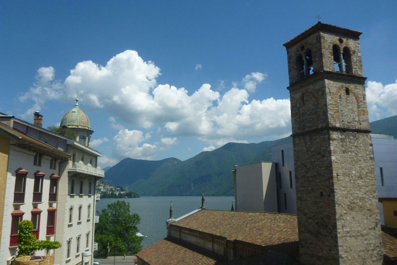 Ganz im Süden des Tessin oder Ticino, wie es im Italienischen heißt, liegt Lugano in einer Bucht am Nordufer des Luganer Sees, umgeben von mehreren Aussichtsbergen an der Grenze zu Italien. Einen Besuch lasse ich mir natürlich nicht entgehen. Bei einem Spaziergang an der Uferpromenade und anschließender erster Gipfelvisite auf dem Monte Bré bei schwülwaren 26 Grad und weiß-blauem Himmel fühle ich mich wie im Urlaub. Ein Sprichwort der Einheimischen lautet: „Hier ist es so schön, dass die Sterne näher zusammenrücken, um einen Platz über dem Paradies zu ergattern." Ich kann das bereits nach meinen ersten Stunden vor Ort gut nachvollziehen.
