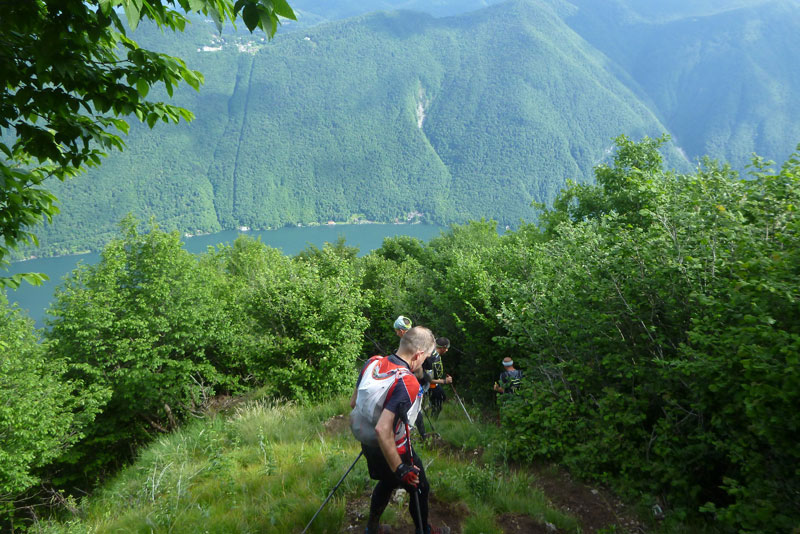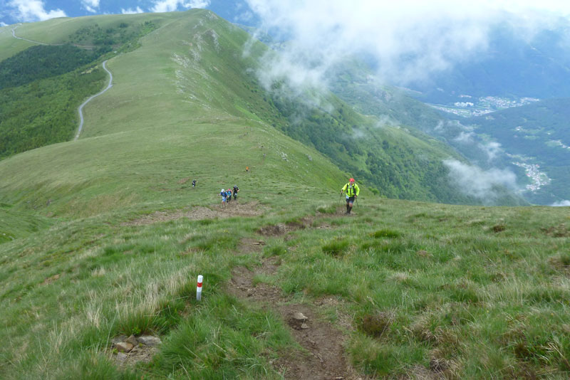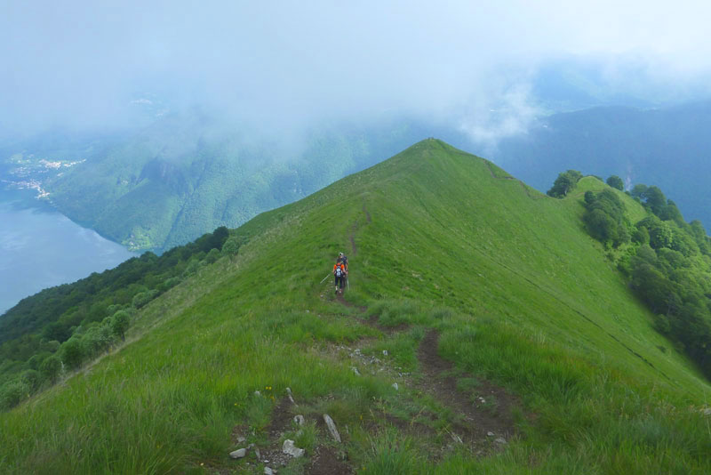 Ein Panoramaweg, der einem grasbewachsenen Grat folgt, bildet einen Großteil der Strecke des Scenic Trail. Bis auf Höhen über 2100 Meter führt der Rundkurs. Insgesamt sind dabei fast 4000 Höhenmeter zu erklettern und wieder abzusteigen mit spektakulären Aussichten nach Norden zu den Alpengipfeln und zum Ostufer des Lago Maggiore, nach Süden Richtung Comer See und in den Golf von Lugano.