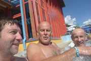 Zusammen mit Charly und Jan machte ich mich also in den frühen Morgenstunden auf den Weg nach Sonthofen. Nach den verregneten Tagen der letzten Woche sollte aber rechtzeitig zum APM wieder die Sonne scheinen. Bis zu 29 Grad waren angekündigt und es sollte wieder eine Hitzeschlacht werden. Wir trafen pünktlich in Sonthofen ein, wo Charly und Jan noch nachmelden mussten. Ich hatte dies schon frühzeitig erledigt. An der Anmeldung traf ich gleich auf Axel Reusch, den Veranstalter des APM, der mich mit den Worten: „Es ist doch Wahnsinn. 10 Jahre APM und jedes Jahr Top Wetter!“ Dabei grinste er wie ein Honigkuchenpferd. Axel ist auch nach zehn Jahren APM noch nicht müde und auf seine Organisation ist steht`s Verlass. In die Startertüte hat er in diesem Jahr auch etwas ganz Besonderes packen lassen. Nachdem es in den letzten Jahren meist Rucksäcke und Taschen mit dem APM-Logo gab, ließ er uns in diesem Jahr ein Handtuch mit aufgestickten Jubiläums-Logo zukommen.