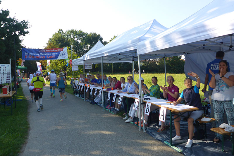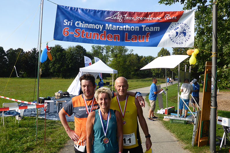 Auch über seinen Tod hinaus blieben ihm die Anhänger treu und das Sri Chinmoy Marathon Team existiert noch immer. Im Münchner Ortsteil Moosach wurde eine Friedensmeile durch Chinmoy eingerichtet. Sie fand ihren Platz im Post-Sport-Park. Der Rundkurs weist eine Länge von 1580 Metern auf und verläuft flach um den Park, der diverse Sportanlagen beherbergt. Diesen Rundkurs gilt es beim Sechs-Stunden-Lauf möglichst oft zu umrunden. Mein Laufkumpel Charly und Kathi Schramm sind sofort dabei, als ich ihnen davon erzähle. Nur Bernie kann ich nicht dazu überreden, er kann sich nicht vorstellen, dass es Spaß machen soll, sechs Stunden im Kreis zu laufen. Für mich ist es mein dritter Sechs-Stunden-Lauf und mir machen sie wirklich Spaß.
