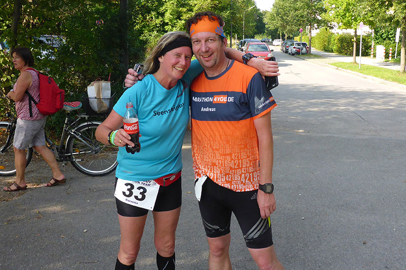 Charly, Kathi und ich gehen noch eine Runde um den Park, um uns schon mal zu orientieren. Zu meiner Freude liegt in Großteil der Strecke im Schatten, da es auch heute wieder um die 30 Grad heiß werden soll. Wir treffen auch schon auf den ein oder anderen Bekannten und wechseln ein paar Worte. Die Vorfreude auf den Start wächst. Eine viertel Stunde vor dem Start begeben wir uns an den Start, der ist nämlich rund 500 Meter vom Ziel entfernt, da die exakten 50 Kilometer somit im Zielbereich zeitlich gemessen werden können. Der Organisator hält noch eine kurze Ansprache und dann geht es auch schon ziemlich unspektakulär los.