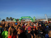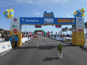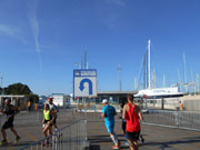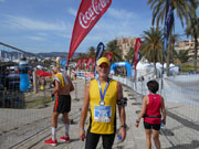 An 5 Erfrischungsstellen pro Runde gibt es Wasser in handlichen 0,25 Liter Fläschchen, Iso und Cola. Nach genau 2 Stunden habe ich die erste Runde hinter mir und biege wieder auf die Küstenstraße ein. Ach, was haben es die Halbmarathonis gut, die sind gleich fertig. Fertig bin ich auch schon fast. Mittlerweile herrschen angezeigte 27 Grad im Schatten. Den gibt es aber an der der Küste kaum und so ist es mir dann nur wichtig das Ziel einigermaßen gut zu erreichen.