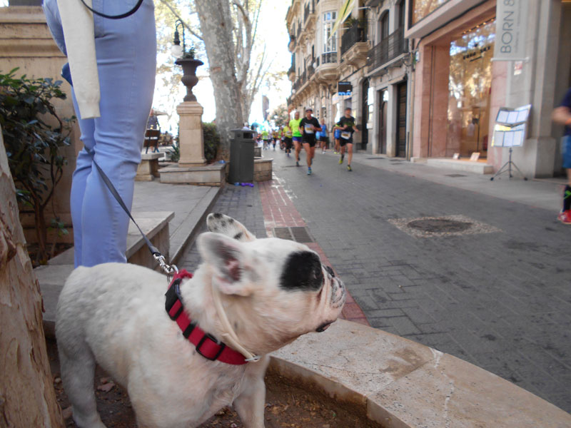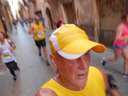 Startschuss! Endlich loslaufen. Zuerst 5 km an der Küstenstraße, entlang dem Jachthafen, vorbei zum Kreuzfahrtterminal und zurück. Dabei schwitze ich schon nach 4 km eine Steigung von etwa 400 Meter Länge hoch. Ach du liebes bisschen. Nun gut, ist halt so. Werde ich halt ein wenig langsamer. Und jetzt, nach ca. 11 km geht es in die Altstadt mit ihren schattigen, verwinkelten Gassen. Jetzt geht aber richtig los. Die Sonne brennt, ich freue mich auf den Schatten in den Gassen. Muss aber jetzt feststellen, dass es da ganz schön rauf und runter geht. Von wegen ein flacher Marathon am Meer! Dazu die vielen Touristen, die von Polizisten mit Trillerpfeifen angehalten werde uns Läufern Platz zu machen. Aber immer geht das halt nicht und so laufe ich Slalom auf Kopfsteinpflaster und dazwischen auf Hochglanzpoliertem Marmor (im Regen macht das bestimmt doppelt Spaß).