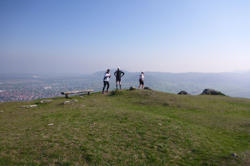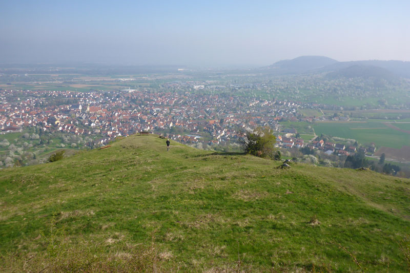 In etwa zwei Kilometer Entfernung der Kelter erhebt sich vor uns auf eine Höhe von 598 Metern die Limburg, der Hausberg von Weilheim, den es heute vier Mal zu besteigen und umrunden gilt. So kommen auf jeder der vier Runden knapp 12,5 km mit je 380 hm auf uns zu. Summa summarum addiert sich das auf etwa 50 Kilometer und 1500 Höhenmeter. Sein Name weist auf das hin, was man bei kritischer Betrachtung auf seinem Gipfel als Krönung vermisst: Eine Burg oder wenigstens eine Burgruine, aber auch die ist nicht mehr vorhanden.