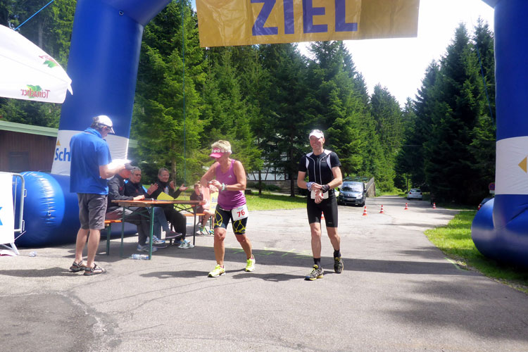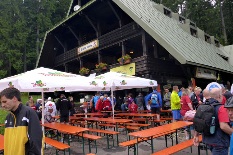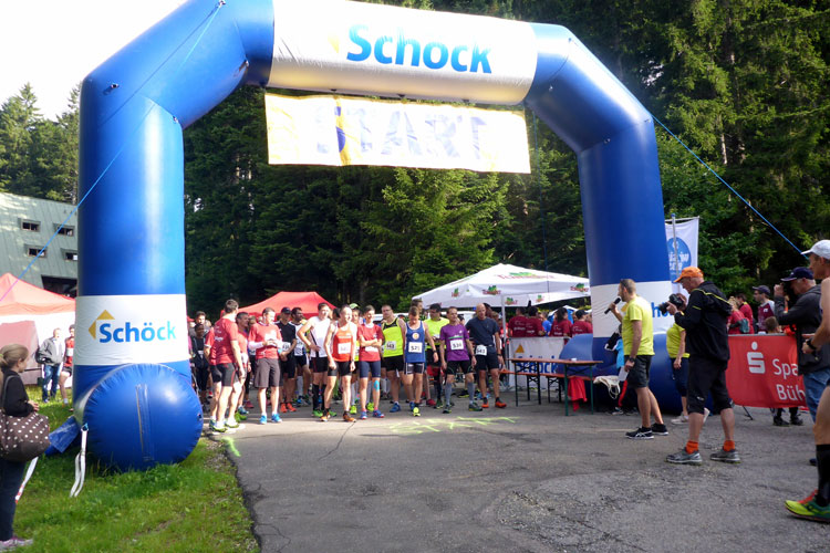 Schon am Samstag reise ich zusammen mit Charly an. Wir sind zwar beide gemeldet, doch Charly wird nicht laufen, da er etwas angeschlagen ist. Er plant ein oder zwei Runden zu wandern. Wir suchen gleich nach unserer Ankunft das Veranstaltungsgelände an der Bühlertaler Skihütte auf und können gerade noch den Zieleinlauf des Halbmarathons, der schon am Samstag stattfindet, miterleben und etwas von der speziellen Atmosphäre dieser Veranstaltung aufsaugen. Sie ist sehr familiär und einfach gehalten und daher sehr sympathisch. Fast wie anno dazumal.