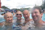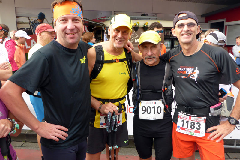 Doch irgendwie keimt auch in mir die Vorfreude auf dem APM und so bin irgendwann auch ich wach. Wir diskutieren, ob es sich lohnt einen Laufrucksack mitzunehmen, eventuell Laufstöcke, oder gar lange Klamotten am Start. Es ungewohnt frisch und die Wolken hängen tief. Doch es sind für heute „nur“ 22 Grad angesagt. Das ist erstaunlich kalt für den APM, wir sind Temperaturen von über 30 Grad gewöhnt. Ich brauche mir aber keine allzu großen Gedanken zu machen. Ich habe nur Kurzes dabei, Stöcke und Rucksack blieben ebenfalls zu Hause. Bernie kann es sich nicht verkneifen zu erwähnen, dass ich halt ein echter Bergläufer sei, nachdem ich kürzlich in einem Bericht der Augsburger Allgemeinen fälschlicherweise als solcher bezeichnet wurde.