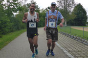 Irgendwie stellte ich gleich von Beginn an fest, dass ich noch etwas unrund laufe. Die Oberschenkelvorderseiten sind fest. Nachwirkungen vom vielen Bergablaufen beim APM. Kati geht es auch nicht viel besser und wir hoffen beide darauf, dass sich das einfach irgendwann wegläuft. Obwohl es nicht wirklich besser wird, haben wir dennoch Spaß und drehen Runde um Runde. Hier und da kommen wir auch mit den anderen Teilnehmern ins Gespräch und ich muss feststellen, bei der Bavarian Challenge 100 wird nicht etwas bayerisch gesprochen. Nein, englisch ist hier die Sprache.