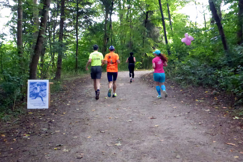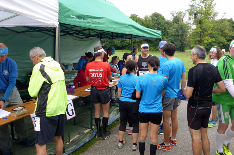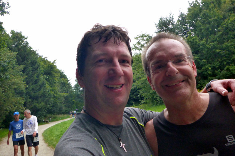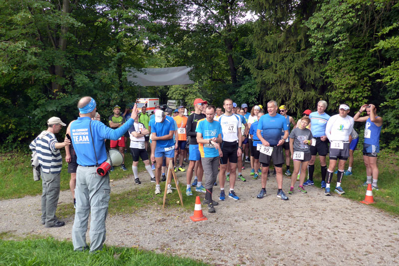 Der Start erfolgt um 10 Uhr, so dass Charly und ich halbwegs ausgeschlafen rund eine Stunde vor dem Start in der Parkanlage ankommen. Es ist also genügend Zeit um die Startnummern abzuholen und im übersichtlichen Starterfeld nach bekannten Gesichtern zu suchen. Als erstes treffe ich auf Marc, den Organisator des heutigen Laufes und wir wechseln ein paar Worte. Auch Jürgen, bei dem ich vor drei Wochen bei der Bavarian Challenge 100 am Start war, ist dabei und wir begrüßen uns freudig. Mit Sophie Schreiber, mit der ich heuer schon gemeinsam den Thermenmarathon in Bad Füssing laufen durfte, treffe ich dann aber auch schon die letzte Bekannte.