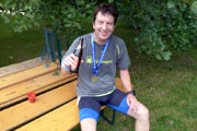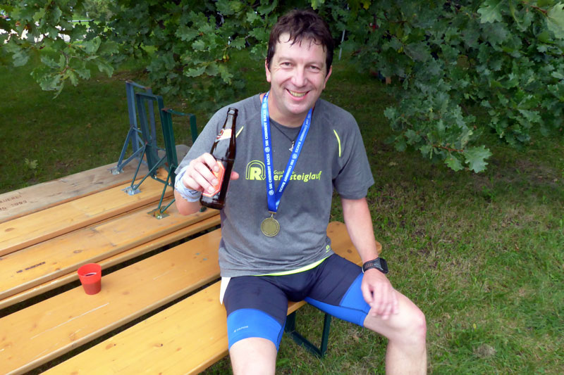 Am Start erhielten wir noch eine kurze Einweisung von Marc und dann ging es endlich los. Erst galt es mal ein vernünftiges Tempo zu finden und die Muskeln warm zu bekommen, weshalb ich es relativ gemütlich angehen ließ. Charly zog mir schon von Beginn an davon. Ich ließ mich aber weder von ihm, noch von anderen Teilnehmer beirren, zumal ja auch ein paar Vierer-Staffeln am Start waren. Sechs Stunden, da kann viel passieren und man muss einfach seinen eigenen Rhythmus finden. Bei mir lief es von Anfang an recht locker, nichts zwickte, die Muskulatur war locker, also erst Mal das Tempo beibehalten. Etwas über eine Stunde wollte ich mir für die ersten zehn Kilometer Zeit lassen.