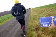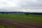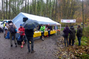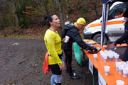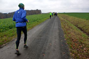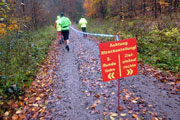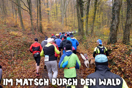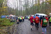 Obwohl Shuttlebusse angeboten werden, mache ich mich zusammen meinen Lauffreunden dennoch zu Fuß auf den Weg in den Wald. Nach etwa 15 Minuten Fußmarsch sind wir auch schon da. Rund 160 Marathonis haben sich eingefunden und ein Blick auf die Uhr zeigt mir, dass es nur noch etwa 10 Minuten bis zum Start sind. Doch dieser wird sich noch um ein paar Minuten verzögern, da der letzte Shuttlebus noch nicht eingetroffen ist und man will ja wirklich alle Teilnehmer gleichzeitig auf die Strecke lassen. Zudem werden wir noch über die Streckenverhältnisse informiert. Aufgrund des Regens der letzten Tage ist der Untergrund teilweise recht matschig und vor allem die letzten Meter vor dem Ziel sollen äußerst rutschig sein.
