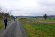 Bis Kilometer sechs geht es nun wieder stetig leicht nach oben und bei einem kurzen Anstieg gönne ich mir meine erste Gehpause, ich will ja Körner für die zweite Runde sparen. Eine Gruppe jüngerer Läufer nimmt diesen noch im Laufschritt und zieht an uns vorbei. Ich lobe sie für ihren Ehrgeiz mit einem nicht ganz ernst gemeinten „Ihr Streber!“. Sie nehmen es lachend zur Kenntnis und machen kurz darauf gleich wieder Platz, da wir sie auf dem anschließenden Bergabstück wieder überholen. Bei einem Blick auf meine Laufuhr stelle ich fest, dass die Kilometer heute förmlich verfliegen. Wir erreichen bei Kilometer 10 das Lengenbachtal. An einem kleinen Weiher ist eine Verpflegungsstation aufgebaut. Zum Tee gibt‘s nun ein paar salzige Cracker. Auf den nächsten drei Kilometern sind wieder ein paar Höhenmeter zu machen, da kann man etwas Energie gebrauchen. Auf der ersten Runde nehme ich die leichten Anstiege noch im Laufschritt, auf der zweiten wird das etwas anders aussehen, das ist mir jetzt schon klar. Aber ich fühle mich heute gut und habe richtig Spaß am Laufen. Den kann mir auch der leichte Nieselregen nicht nehmen, der hier und da einsetzt.