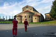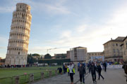 Es sollte nahezu einhundert Jahre dauern, bis man wieder Mut fasste und mit dem Bau fortsetzte. Die weiteren Stockwerke wurden leicht versetzt gebaut, womit man hoffte, dass der Schwerpunkt wieder an die richtige Stelle rückte. Doch der Boden gab weiter nach und der Turm blieb schief. Nach weiteren 80 Jahren setzte man dem Turm noch einen Glockenturm auf und der Torre pendent war fertig. Er senkte sich jedoch immer weiter und man versuchte in den kommenden Jahrzehnten immer wieder den Turm am kippen zu hindern. Doch alle Maßnahmen waren vergebens. 1991 wurde der Turm schließlich für Besucher gesperrt. Er wurde mit Stahlkabeln gesichert und man trug Erdreich unter dem Turm ab, um ihn wieder halbwegs gerade zu stellen. So konnte man die Neigung, die zu „Bestzeiten“ rund fünf Meter betrug um fast 54 Zentimeter verringern. Heute ist der Turm wieder für Besucher geöffnet, jedoch dürfen ihn maximal 40 Personen gleichzeitig besteigen. Der Eintritt beträgt für Interessierte 18,-- Euro. Mir genügt die Aussicht vom Balkon unseres Hotels und so kann ich mir das Anstellen in der Schlange von Touristen an den kommenden Tagen sparen.