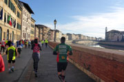 Gegenüber geht es in die Borgo Stretto, die mir mit ihren Laubgängen und diversen kleinen Cafés wesentlich besser gefällt. Doch noch geht es für uns weiter am Arno entlang in Richtung Osten. Auf der genüberliegenden Flussseite kann ich schon zahlreiche Läufer erkennen, die bereits an der Ponte di Fortezza gewendet haben.