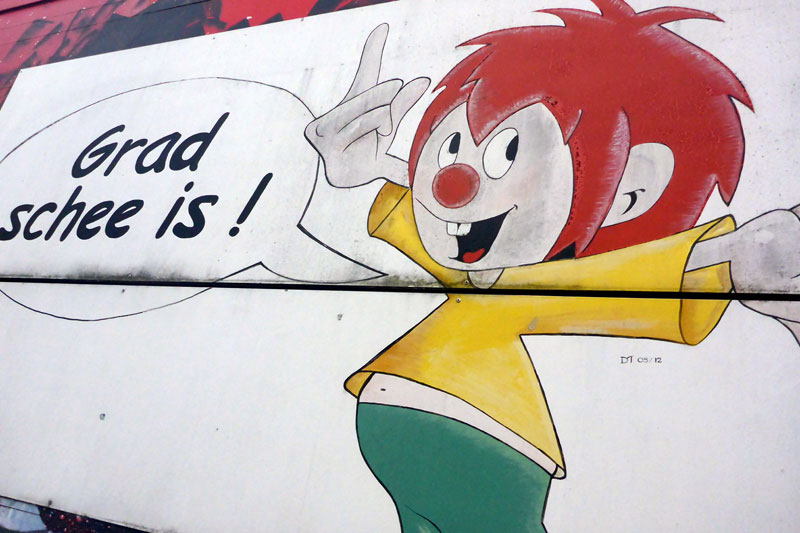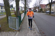 „Wann geht's denn los?“, will Janosch wissen, der auch nach 117 bestrittenen Marathons noch etwas dazulernen kann. „Es ist schon losgegangen, meine Uhr läuft“, erklärt ihm Bernie und wir traben los. „Ach das ist alles?“, Janosch klang amüsiert. Zu unserer Überraschung ging es nicht, wie in den letzten beiden Jahren nach links, sondern nach rechts von der Halle weg. Ach ja, ich konnte mich noch erinnern, dass mir Rita schrieb, dass sie wieder eine schöne Strecke ausgesucht haben. Die Strecke scheint also nicht immer die gleiche zu sein. Wir wollen uns überraschen lassen. Charly entschwindet uns schon auf den ersten Metern. Bei uns soll heute Bernie das Tempo vorgeben, da seine Wade ja immer noch gelegentlich muckt und er kein Risiko eingehen will.
