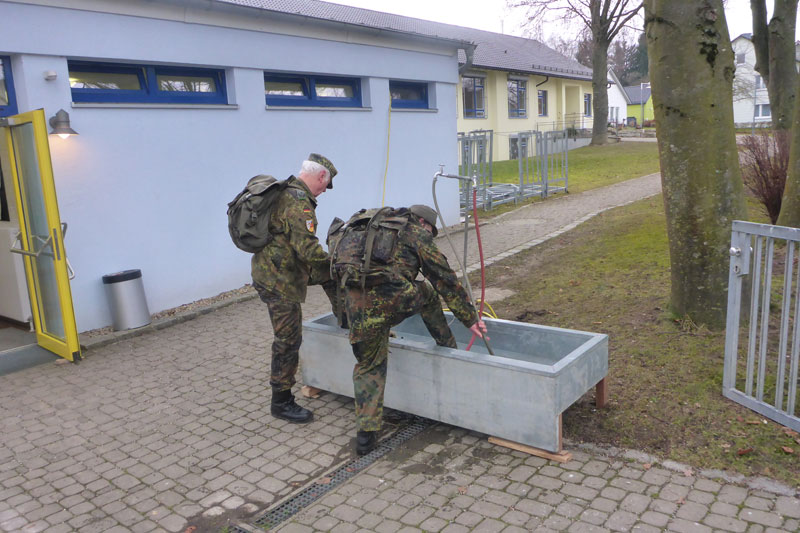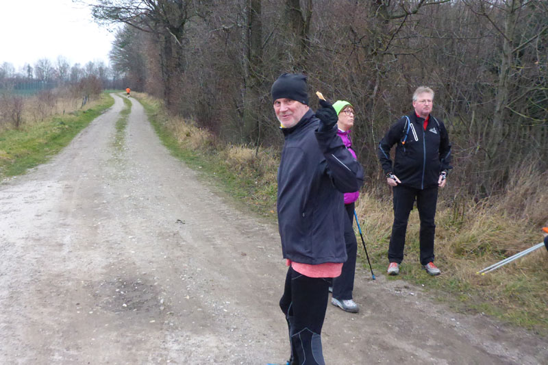 Nach 5 km erreichen wir Nassenhausen und wenig später bereits die zweite Kontroll- und Versorgungsstelle. Oh, der Tee ist aber heiß. Bis wir unsere Becher leeren können, ohne uns zu verbrühen, vergeht einige Zeit. Unterdessen werden wir von einem auffällig in Gelb gekleideten und mit einem großen Trinkgürtel ausgerüsteten Powerwalker überholt. Ich kann mich erinnern, dass wir ihn in Nassenhausen bereits überholt haben.