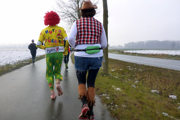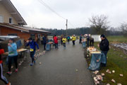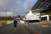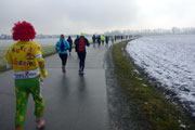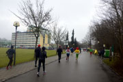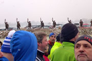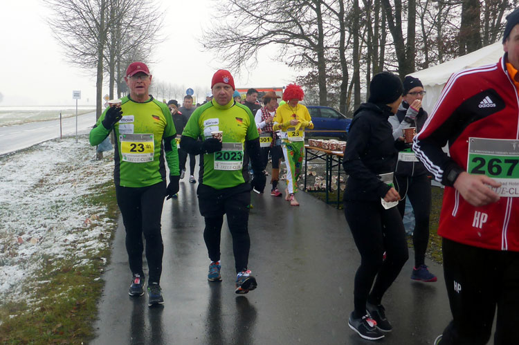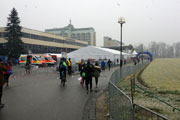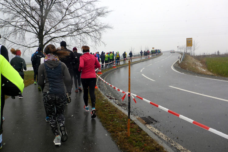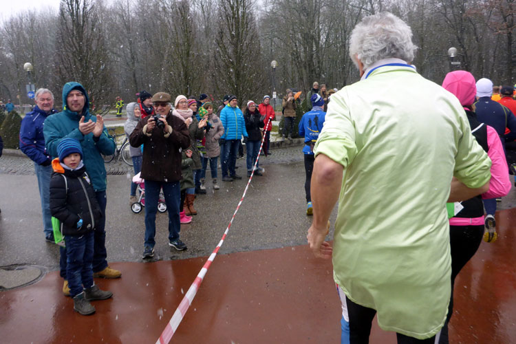 Am nächsten Morgen gönnten wir uns zusammen mit Margot und Klaus Duwe, sowie Toni Lautner noch ein ausgiebiges Frühstück, bevor wir uns auf den Weg zu den Thermen machten. Kaum hatten wir die ersten Schritte vor das Hotel gewagt, begann es auch schon zu schneien. Dicke Flocken machten Lust auf einen echten Wintermarathon. Vor und in den Thermen war auch schon ordentlich was los und für mich war die Zeit fast zu knapp, um mich mit allen Lauffreunden auszutauschen. Für einen kurzen Small-Talk mit Regina Halmich nahm ich mir selbstverständlich Zeit und nachdem sie mir alles Gute für meinen Lauf wünschte, konnte ja nun wirklich nichts mehr schiefgehen. So stand ich dann auch wenig später mit zahlreichen anderen Läufern am Start und konnte es kaum noch erwarten endlich loszulegen.