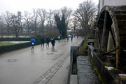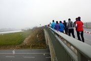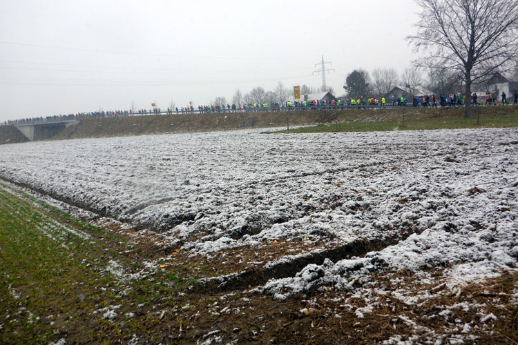 Die Strecke wurde in den letzten Jahren nicht mehr geändert. Erneut galt es zunächst eine 11-Kilometer-Schleife und im Anschluss eine 10-Kilometer-Schleife zu laufen. Für Iris, die sich nach einer längeren Laufpause für den Halbmarathon entschieden hatte, waren diese beiden Schleifen je einmal zu durchlaufen. Bernie, Charly, Mario und ich dürfen je zweimal durch die Schleifen. Schon nach dem Start wird heute jeder sein eigenes Tempo laufen. Charly will Iris beim Halbmarathon ziehen und danach schauen, wie es läuft. Bernie will es gemütlich angehen lassen und erstmal auf seine geschundenen „Wadln“ horchen. Meine Mission für die erste Runde lautet möglichst viele Fotos für Klaus zu schießen und danach schauen, was noch geht. Mario wird gleich von Beginn an wegziehen, denn das Wort „gemütlich“ ist für ihn eindeutig ein Fremdwort.