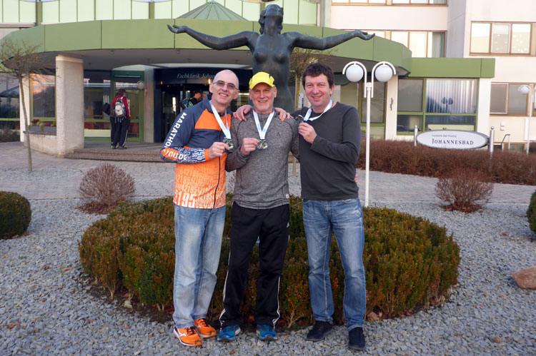 Der Thermen-Marathon feiert heuer sein 25-jähriges Jubiläum. Da gibt es keine Ausreden, da muss man mit dabei sein. Bernie, Charly und ich sind als langjährige Wiederholungstäter natürlich am Start, das ist eh klar. Nach längerer Laufabstinenz sind auch Iris und Mario in Bad Füssing dabei.