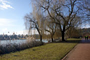 Über einen Fußweg vom Parkplatz gelangen wir direkt zum Max-Eyth-See. Der See entstand durch Kiesabbau, der 1914 zunächst am Neckar im Stuttgarter Ortsteil Hofen begann. Im Jahr 1925 bis 1926 wurden dann die mächtigen Kies- und Sandschichten im Gebiet des heutigen Max-Eyth-See abgebaut. 1935/35 wurde das Gebiet schließlich zur Sport- und Badeanlage erweitert. Ein Jahr später wurde der See nach dem Ingenieur und Schriftsteller Max Eyth benannt, der in diesem Jahr seinen 100. Geburtstag gefeiert hätte. 1961 wurde das Gelände unter Landschaftsschutz gestellt und dient heute als Naherholungsgebiet.