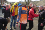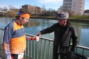 Start und Ziel liegen beim Wassersportzentrum am Max-Eyth-See in Stuttgart-Hofen direkt am Fluss. Etwa einen Kilometer vom Startplatz gibt es einen großen Parkplatz, der zur Startzeit praktisch noch leer ist und so für entspanntes Anreisen ohne lange Parkplatzsuche sorgt. Frostige 0 Grad zeigt uns das Thermometer noch um 8 Uhr an, aber im Laufe des Tages soll der Frühling mit 13 Grad und viel Sonne vorbeischauen. Die unterschiedlichen Temperaturen sorgen bei mir normalerweise immer für Kopfzerbrechen bei der Kleiderwahl. Beim Neckarufer Marathon passieren wir etwa grob alle 10 km den Start- und Zieldurchlauf. Wir können hier unsere Tasche mit Wechselklamotten deponieren und natürlich so auch immer wieder ablegen wenn es uns zu warm wird. Also optimal, ich muss mich nicht vom Start weg entscheiden, was ich bis ins Ziel trage. Zuerst müssen Greppi, Charly und ich aber erst mal die vielen Lauffreunde und Bekannten begrüßen, gefühlsmäßig kennt man fast jeden zweiten.