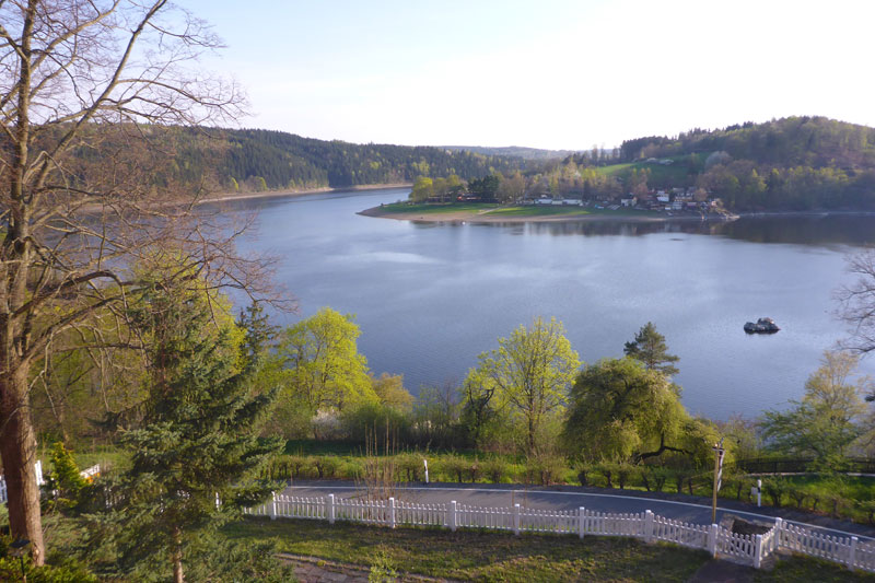 Optisch kann man sich tatsächlich auf dem ersten Blick recht schwer vorstellen einen Ultra um den Bleilochstausee zu laufen. Wenn man so vom Veranstaltungszentrum SEZ, dem Seesport- und Erlebnispädagogischen Zentrum Kloster einen Blick in die weite Runde wirft, kommt einem der Stausee nicht übermäßig groß vor. Würde man aber einen Blick von oben auf die komplette Ausdehnung werfen, könnte man erst die gewaltigen Dimensionen ausmachen. Ein Blick auf die Landkarte reicht aber auch schon. Wie Tentakeln einer Krake schlängeln sich die Saale und die Ausläufer des Stausees durch das dicht bewaldete Thüringer Schiefergebirge. Die Einheimischen nennen es auch das „Thüringer Meer“. Insgesamt rechnet man dem Bleilochstausee 28 km Länge und ein Wasservolumen von 215 Millionen cbm zu.