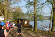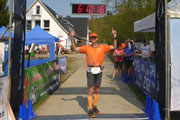 Selbstverständlich trifft man auch hier wieder einige der Laufverrückten der Szene. Kraxi macht derzeit jede Woche einen Doppeldecker, damit sich die Anfahrt aus der Steiermark auch lohnt. Dabei ist er aber nicht so ein „ökonomischer“ Läufer wie die meisten von uns Marathonsammlern, sondern er ist fast immer ganz vorne im Feld zu finden. Mindestens 42 Mal will er heuer so das Ziel erreichen. Meine Augsburger Landsfrau Sybille ist bei uns Rekordhalterin der Sammler und lässt sich heute von Kraxi pacen, sie ist auch gerne schnell und laaange unterwegs. Sie war schon mehrmals hier am Start und hat mir den Bleilochlauf wärmstens empfohlen. Heute wird sie zweite Frau. Was mir heute noch ganz besonders ins Auge fällt, sind die starken Wadln der Ultras. Ich meine jetzt nicht den Umfang, sondern eher die Kunstwerke die sie auf den Muckis präsentieren.
