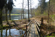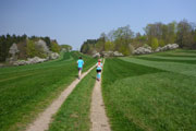 Nach 14 km verlassen wir für einen kurzen Abschnitt die Uferstrecke, wenig später erfolgt auch die Streckenteilung von der 24er-Runde. Sie tangieren uns aber nicht, da sie erst eine Stunde nach uns starten, so gibt es kein Gedrängel oder Überholungen von den Schnelleren der Mittelstrecke. Für uns geht es ab der Trennung zum ersten Mal auch etwas länger aufwärts, aber nicht sonderlich steil. Wir passieren das Waldrestaurant und ehemalige Forsthaus Isabellengrün, es liegt mitten im Wald auf einer idyllischen Waldwiese. Prinzessin Isabelle Auguste gab dem kleinen Ortsteil seinen Namen.