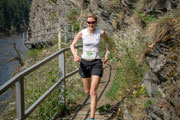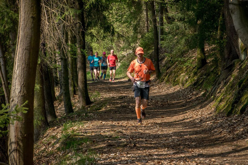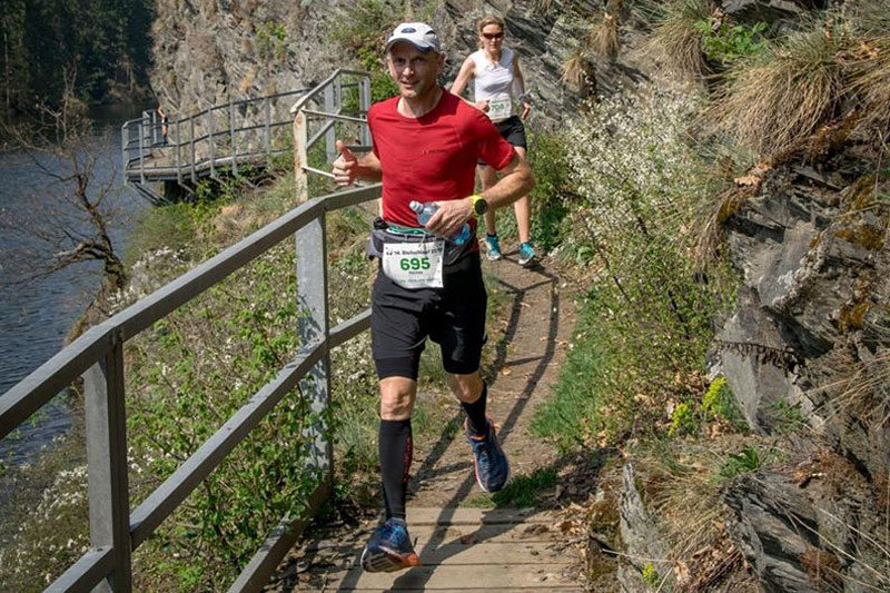 Eine kleine Schlange empfängt mich, aber die löst sich doch relativ schnell wieder auf, so dass man nicht in Stress verfallen muss. Neben dem Bleilochultra über 48 km mit etwa 1150 Höhenmetern werden noch eine Classic-Strecke mit 24 km und eine Light mit 12 km angeboten. Einstiegsdroge ist der Rookie mit 4,6 km und auch der Nachwuchs darf sich auf 2,3 oder 1,25 km austoben. Insgesamt gibt es ein Teilnehmerlimit von 600 Startern, damit zügiges Vorankommen auch auf schmaleren Wegen garantiert ist und das ist auch bei den drei längeren Strecken heuer erreicht. Auf den Ultra entfallen dabei etwas über 180 Teilnehmer. Vorangemeldete bekommen mit der Startnummer ein schönes Baumwollshirt ausgehändigt.