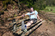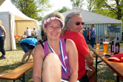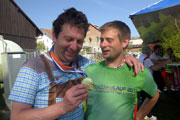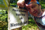 Im Garten fanden wir zwischen zahlreichen anderen Gästen doch noch einen Tisch. Doch als wir bei der Bedienung nach der Karte fragten, entglitten mir kurz die Gesichtszüge. Heute gibt es nur die Möglichkeit an der Nudelparty teilzunehmen, da die Küche aufgrund der vielen Übernachtungsgäste sonst nicht mehr klarkommen würde, war die überraschende Antwort. Das musste ich erst einmal sacken lassen. Kati schien auch nicht begeistert, hatte ich ihr doch im Vorfeld schon von Ludwigs leckerer Küche vorgeschwärmt. Zwischenzeitlich hatte sich noch Ulrich Tomaschewski vom 100-Marathon-Club, nebst Gattin bei uns am Tisch eingefunden. Es gab natürlich viel zu erzählen und kurzzeitig waren die Gedanken an den Zwiebelrostbraten verflogen. Mein Magen meldete sich jedoch schließlich wieder und ich machte mich kurzentschlossen auf den Weg in Richtung Küche.