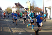 Gleich danach machten wir uns auf den Weg zur Adam-Riese-Halle, wo die Startnummernausgabe stattfinden sollte. Aufgrund meiner Ortskenntnisse aus dem Vorjahr, hatte ich mir jedoch keine großen Gedanken gemacht, wo diese zu finden sei, vermutete sie jedoch in Richtung Bahnhof und so spazierten wir los und konnten schon mal die schöne Altstadt von Bad Staffelstein genießen. Erste Hinweisschilder auf den Marathon konnten wir dabei ebenfalls entdecken, allerdings fehlte der Hinweis auf die Adam-Riese-Halle. So standen wir plötzlich in einem Schulhof und eine Dame fragte uns gleich, wohin denn unser Weg führen soll. Als wir ihr erklärten, dass wir die Marathonmesse suchen, erklärte sie uns, dass wir zwar nahe dran sind, aber dass der Pausenhof eingezäunt ist und dass wir da nicht wieder rauskommen sollten. Ich vermutete mal, wir hatten es hier mit der Rektorin der Schule zu tun, denn sie kannte eine prima Abkürzung. Kurzerhand sperrte sie das Schulhaus auf und geleitete uns zum Hinterausgang. Und schon waren wir da.