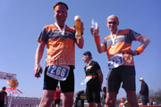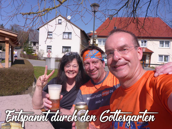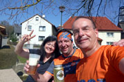 Am Wochenende war es dann endlich so weit. Zusammen mit Bernie und Jan machten wir uns schon am Samstag auf den Weg nach Bad Staffelstein und bezogen ein Zimmer in einer kleinen Pension. Schon hier bekamen wir einen kleinen Vorgeschmack auf die typisch offene Art der Oberfranken. Denn Frühstück gibt's in der Pension ab halb Neun wurde uns erklärt. Da zu diesem Zeitpunkt der Startschuss für den Obermain-Marathon fallen würde, was das für uns eher ungünstig. Aber kein Problem. Der junge Mann telefonierte kurz mit seiner Chefin und schon war klar, dass für uns rechtzeitig aufgedeckt wird.