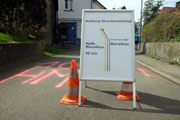 Immer wieder erreichen wir eine der Verpflegungsstellen, die im Abstand von fünf Kilometern aufgebaut sind. Die Helferinnen und Helfer sind stets gut drauf und für jeden Spaß zu haben. Bis etwa Kilometer 19 bleiben wir im Wald, müssen nur hier und da eine Straße überqueren, die jedoch stets perfekt durch die Feuerwehr oder Helfer abgesichert ist. Als also etwa bei Kilometer 19 den Wald erst einmal hinter uns lassen, liegt vor uns schon Lichtenwald. Die Halbmarathonis, die uns immer noch umgeben, werden bald ihr Ziel erreicht haben. Ich kann auch schon Baden-Württembergs schönsten Wasserturm vor mir erkennen. Im Oktober 2008 konnten Hörer des Radiosenders SWR1 wählen und der Lichtenwalder Wasserturm schaffte es auf Platz 1 vor Mannheim. Der Turm wurde am oberen Ende mit blauen Wassertropfen verziert und macht das sonst doch etwas unspektakuläre Gebäude doch tatsächlich zu einem Augenmagneten. Übrigens stammte jede zweite Stimme für den Lichtenwalder Wasserturm aus Lichtenwald selbst, was zeigt, dass die Bewohner hinter ihrem verzierten Wasserturm stehen. |