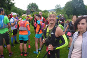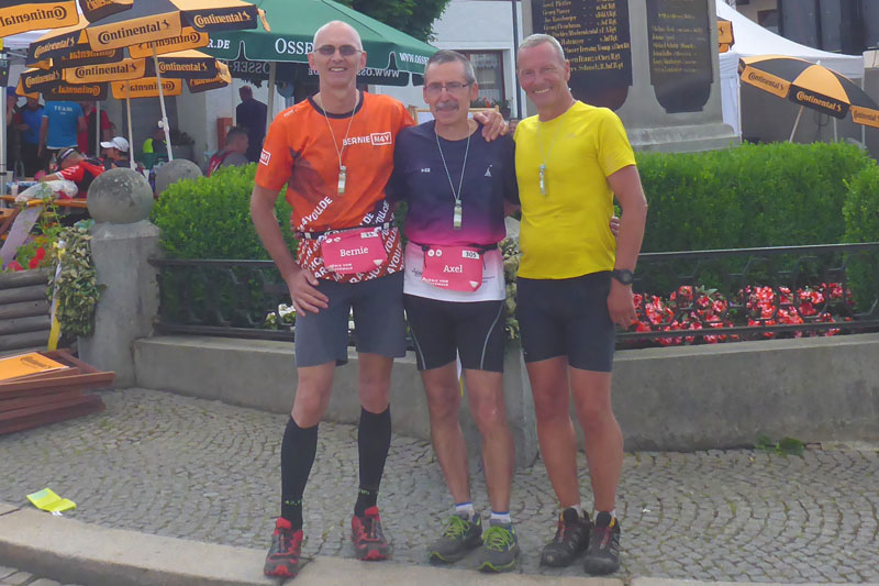 Für mich gibt’s erstmal jede Menge der Trailfamilie zu begrüßen. Steffi jammert über schwere Beine. Ja, kein Wunder nach Albtraum 100 und SM am Rennsteig in den vergangenen Wochenenden auf dem Siegertreppchen. Andi und Axel haben großen Respekt vor der Strecke. Axel verrät mir ganz leise, dass heute sein 100.