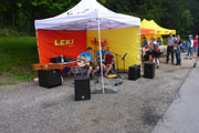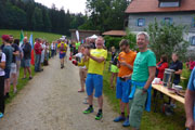 Die Startunterlagen für die „Großen“ sind gut gefüllt. Neben Bons für ein Essen, Getränk und ein exklusives Weißbierglas mit aufgedrucktem Höhenprofil des Kine vom Bayerwoid sind noch ein Stirnband, Ärmlinge und einige Accessoires zu finden. Zuerst werden die Favoriten vorgestellt, um 19 Uhr beginnt dann die offizielle Eröffnung mit abschließendem Race-Briefing. Das Wetter ist herrlich, so sind die Plätze vor der Bühne gut besetzt.