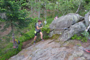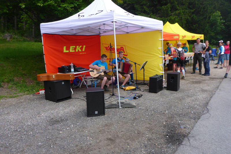 Nach 43 Minuten ging an der Zeitmessmatte der Bergkönig durch, für uns „unwesentlich“ langsameren gilt es eher das Zeitlimit von 1:30 Stunden einzuhalten. Markus vom Orga-Team meinte beim Briefing, das schafft man selbst im Wanderschritt. Na, da bin ich nicht so überzeugt. Es muss schon etwas gelaufen werden, sonst wird’s eng. Aber, es ist schon noch einigermaßen easy zu bewältigen und es gab auch angeblich noch nie jemand, der hier hängen blieb. Nach dem Durchlauf können wir an VP 1 verpflegen und Getränke aufnehmen. Man sollte spätestens hier seine Getränkeflasche oder Wasserblase auffüllen. Bis zum Gipfel auf dem Großen Arber gibt es keine Möglichkeit mehr.