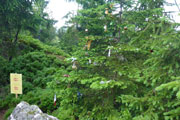 In dem ganzen Trubel in Eck und an der VP löst sich irgendwie auch das komplette Teilnehmerfeld auf. Fast ganz alleine mache ich mich vorerst auf den weiteren Weg. Unmittelbar hinter der Station befinden sich einige Totenbretter. Sie finden sich heute fast nur noch im Bayerischen Wald und waren im 19. Jahrhundert hier weit verbreitet. Zum Gedenken an einen Verstorbenen wurden die Bretter meist an landschaftlich schönen Orten angebracht. Sie sind Relikte und Zeugnisse des alten Volksglaubens, wonach die armen Seelen erst dann aus dem Fegefeuer hüpfen, wenn das Brett verwittert ist.