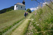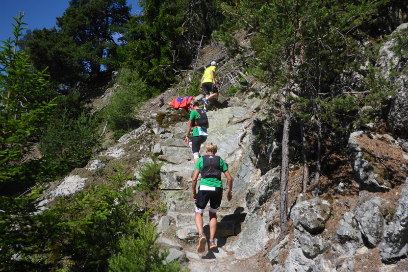 Direkt im Anschluss an die VP beginnt der Aufstieg. Schnell gewinnen wir an Höhe, bis zu unserer Halbzeit in Stilfs sind auf den folgenden 4 Kilometern etwa 500 Höhenmeter aufzusteigen. Nachdem wir zwei Höfe durchquert haben, folgt bereits die fünfte Versorgungsstation. Den Apfelstrudel sollte man zwingend probieren. |